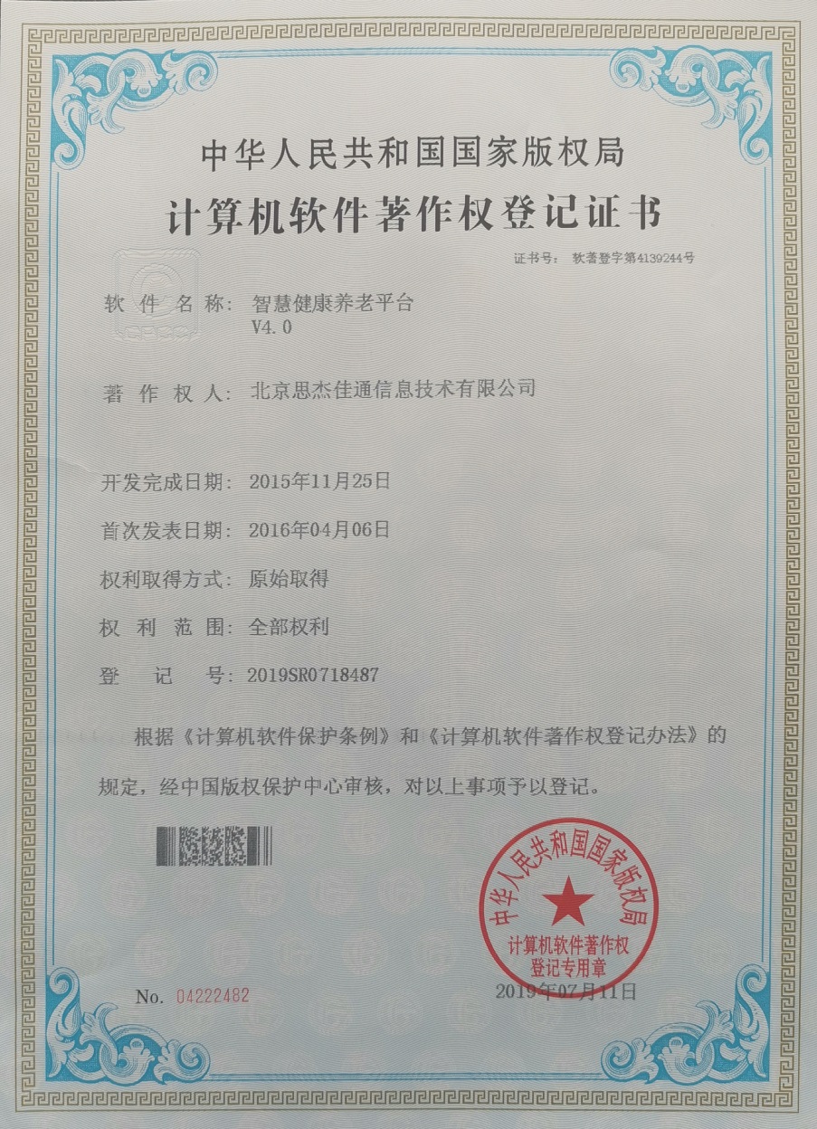八、具有多項核心的養(yǎng)老平臺計算機軟件知識產(chǎn)權(quán)證書