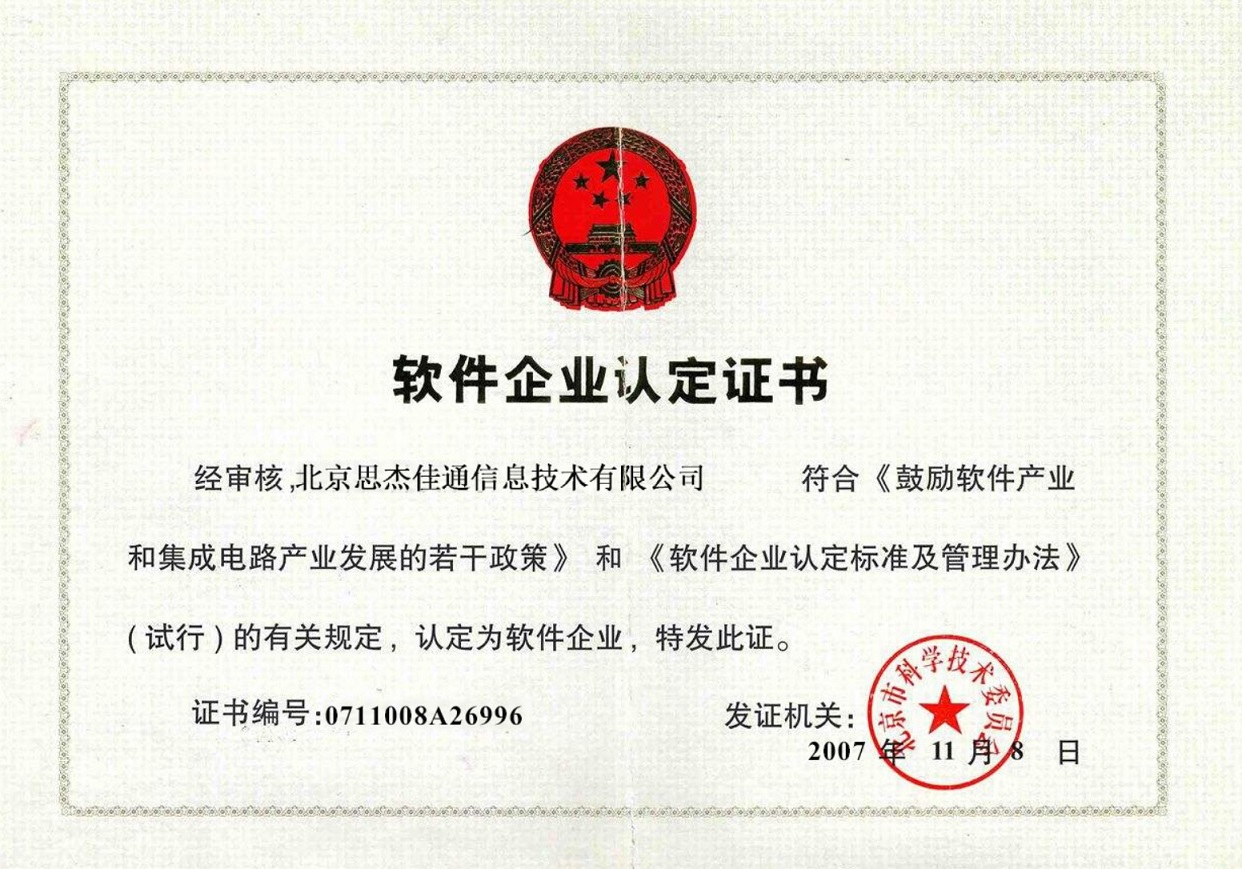 九、軟件企業(yè)認(rèn)定證書