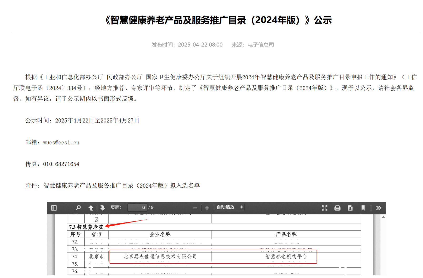 杰佳通智慧養(yǎng)老院平臺平臺入選國家三部委《智慧健康養(yǎng)老產(chǎn)品及服務(wù)推廣目錄(2024年版)》